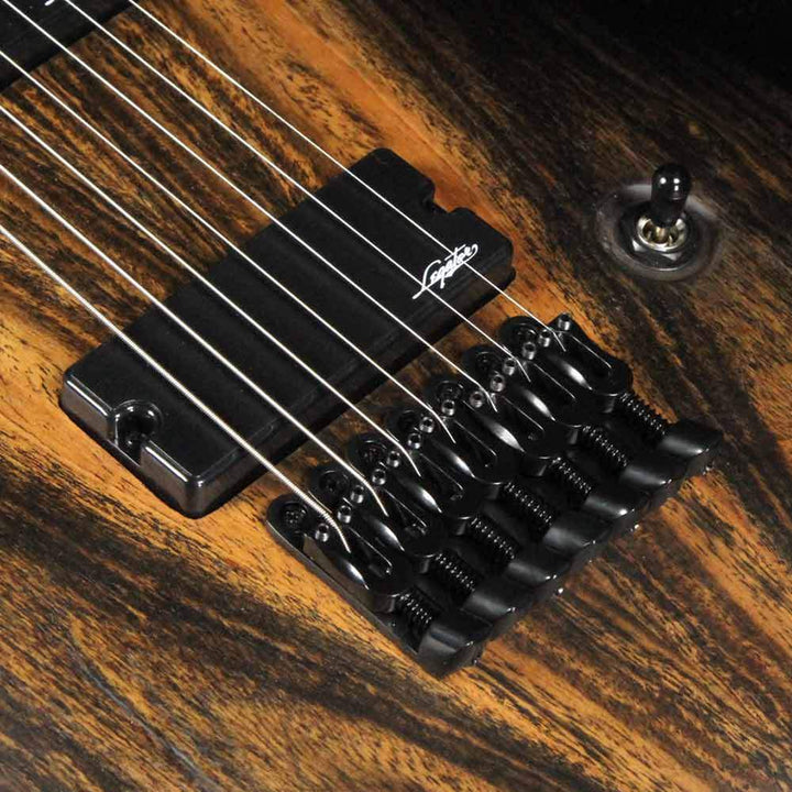 The all new Legator Ninja Performance Series guitars are serious shred and riff factories! This N7P 7-string boasts a great looking Bocote top over it's mahogany body, and is loaded with burning hot custom alnico V humbuckers. It also sports a slim maple neck topped with an ebony fingerboard, a Legator Monorail bridge, and all black hardware.