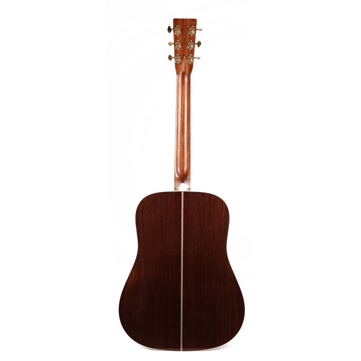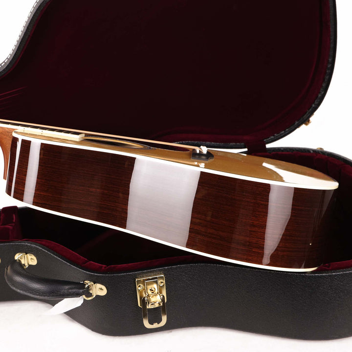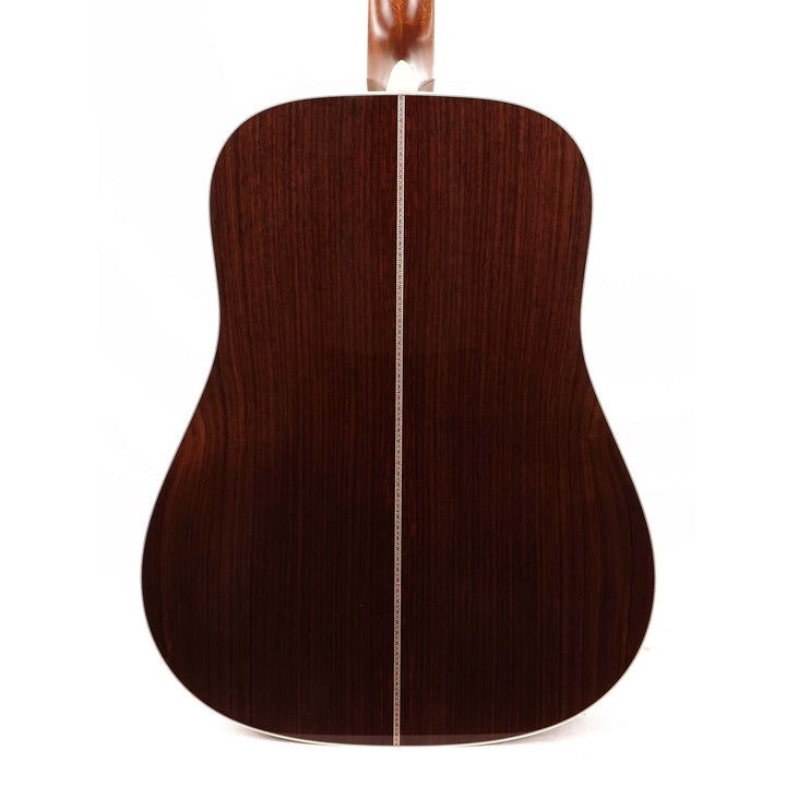 The Martin D-41 is a trusted icon in Martin’s acoustic lineup, blending powerful tone with refined elegance. Its Dreadnought body size delivers a bold, projective sound with strong bass, clear trebles, and rich overtones, making it ideal for players who want their music to fill the room. Handcrafted with a solid spruce top and solid East Indian rosewood back and sides, the D-41 offers a resonant voice that’s balanced across all playing styles. The satin genuine mahogany neck, featuring a Golden Era (GE) Modified Low Oval profile, high-performance taper, and 25.4" scale length, ensures smooth playability. Luxurious abalone details, including the rosette, top-edge trim, and hexagon inlays, elevate its timeless design. Complete with antique white binding, a bound ebony fingerboard, an ebony bridge with bone pins, and gold open gear tuners.