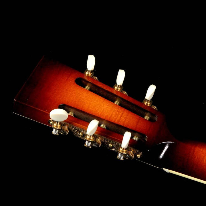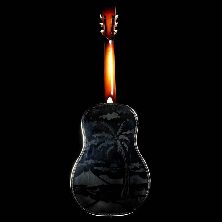 This unique National Style O Deluxe single-cone resonator features the famous palm trees design on the body. Made in 2002, this resonator features a nickel-plated brass body, a bursted "V" shape maple neck with rosewood fingerboard, and vintage style tuners with National shield on the headstock. This guitar is in excellent condition with few signs of use and includes the original hardshell case.