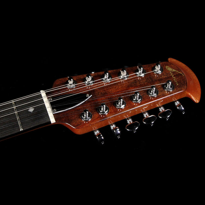 This is a remake of a very rare guitar that was built for a very talented musician. This is the new and limited edition Ovation Glen Campbell Bluebird in its rare 12-string incarnation. The guitar is a solidbody electric guitar built in the USA, with a crème to blue flake burst finish over a mahogany body. The original Bluebird was built for Glen in the 1970s, based on the original Ovation Viper body style. The Campbell family loaned the original guitar to Ovation for the recreations, of which only 10 six strings and 5 twelve-string guitars were made. The guitar has a custom Hipshot bridge, handwound humbuckers, original factory retro volume and tone knobs, and the headstock even has a retro Ovation logo just like the original!