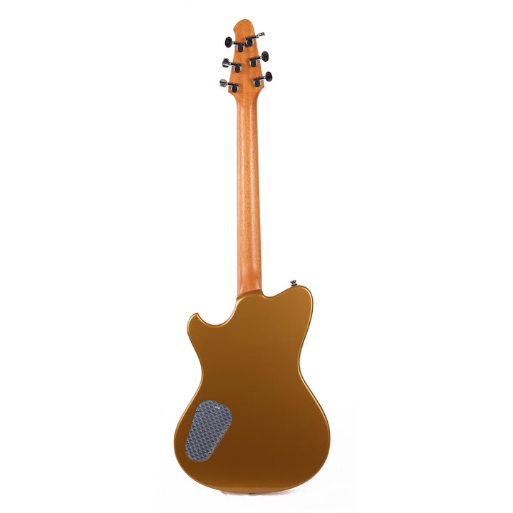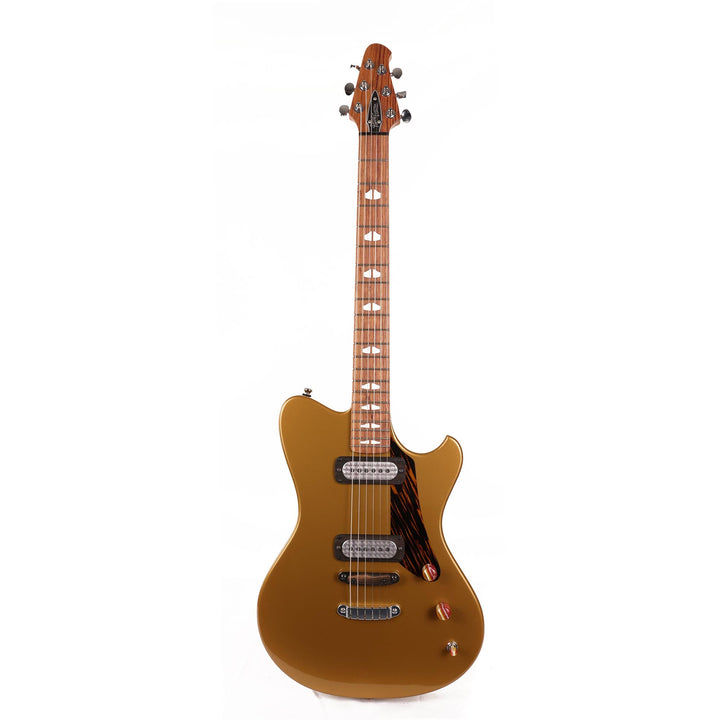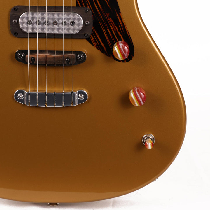 Introducing a brand new guitar design by Andy Powers of Taylor Guitars fame - this is the Powers Electric A-Type finished in Gold Metallic over a maple top! Inspired by Andy Powers' upbringing in Southern California - the A-Type takes its cues from classic American cars, surfing, skateboarding and everything else under the California sun. The A-Type is a fully-enclosed hollowbody electric guitar design. As far as construction and tone woods go, it's a solid braced maple top over an urban ash body, trussed together by two internal soundposts that the bridge is actually anchored into. The hollow body is designed to maximize resonance and suppress feedback by vibrating in sync together.