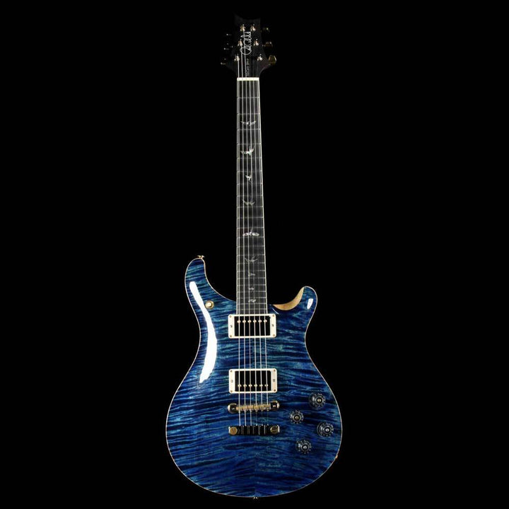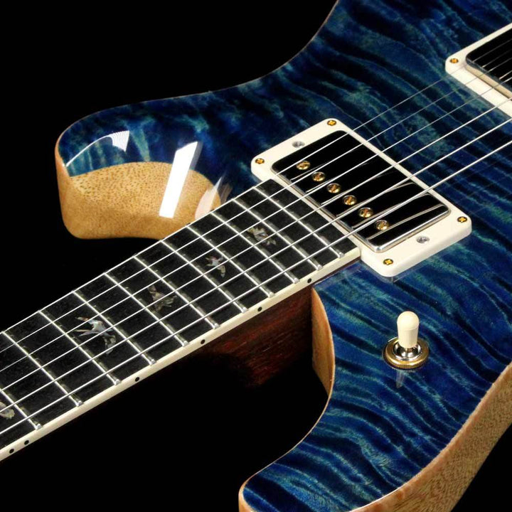 Here is a beautiful used Wood Library edition Paul Reed Smith McCarty 594 in a River Blue finish over the flame maple top and korina body, built recently in 2018 and still in overall excellent condition with the original hard case included. The 594 takes the McCarty model we all know and love and gives it a 24.594” scale length, just slightly longer than 24.5” - not to mention a new PRS designed stopbar tailpiece and two 58/15 LT (low turn) humbuckers with coil tap capabilities.