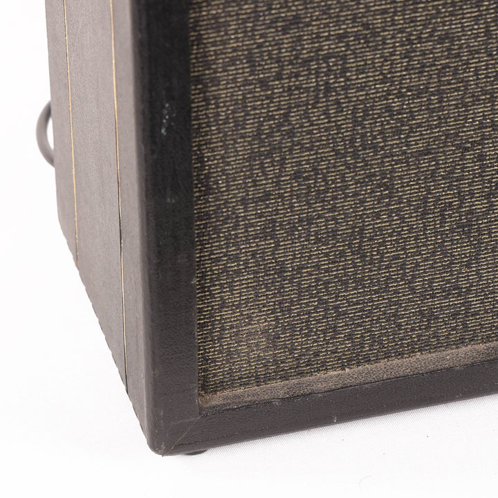 This is a vintage Shaftesbury '66 amplifier. The speakers of this amp are not circular they are oblong and perpendicular to one another. This could be meant to account for spacing within the cabinet, none the less, this interesting execution sounds great! It is important to note that input one is functional but finicky depending on how the instrument cable is plugged in. The power cable to this amp extends about a foot from the amplifier. It is sold in as-is vintage condition.