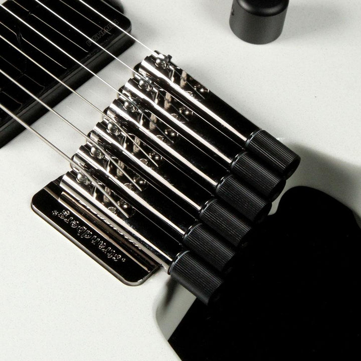 This is the Strandberg Boden meant for the modern Metal guitar player, literally dubbed the ‘Boden Metal’ – this one in a White Pearl finish over a maple top and chambered basswood body with a roasted maple neck and ebony fretboard. The guitar is loaded with a set of Fishman Fluence Modern humbuckers with a 3-way switch and push/pulls to split the coils as well as access the two voicings within the pickups Luminlay side dots and fretmarkers are on board to make sure you don’t lose your place on even the darkest of stage lights.