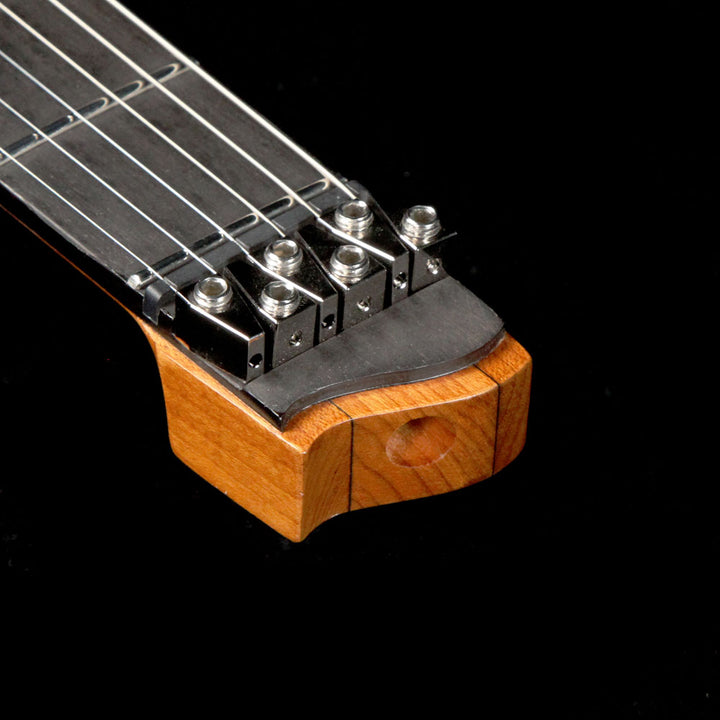 This is the Strandberg Boden Metal model, this one in a 6-string incarnation with a cool and dark black pearl finish. The Metal guitar is built for modern Rock and Metal tones that can handle a ton of gain thanks to the Fishman Fluence Modern humbuckers. Woods used on the guitar are a plain maple cap on a chambered mahogany body, along with a roasted maple neck topped with an ebony fretboard. Luminlay side dots help you keep track of your playing on even the darkest of stage lights.