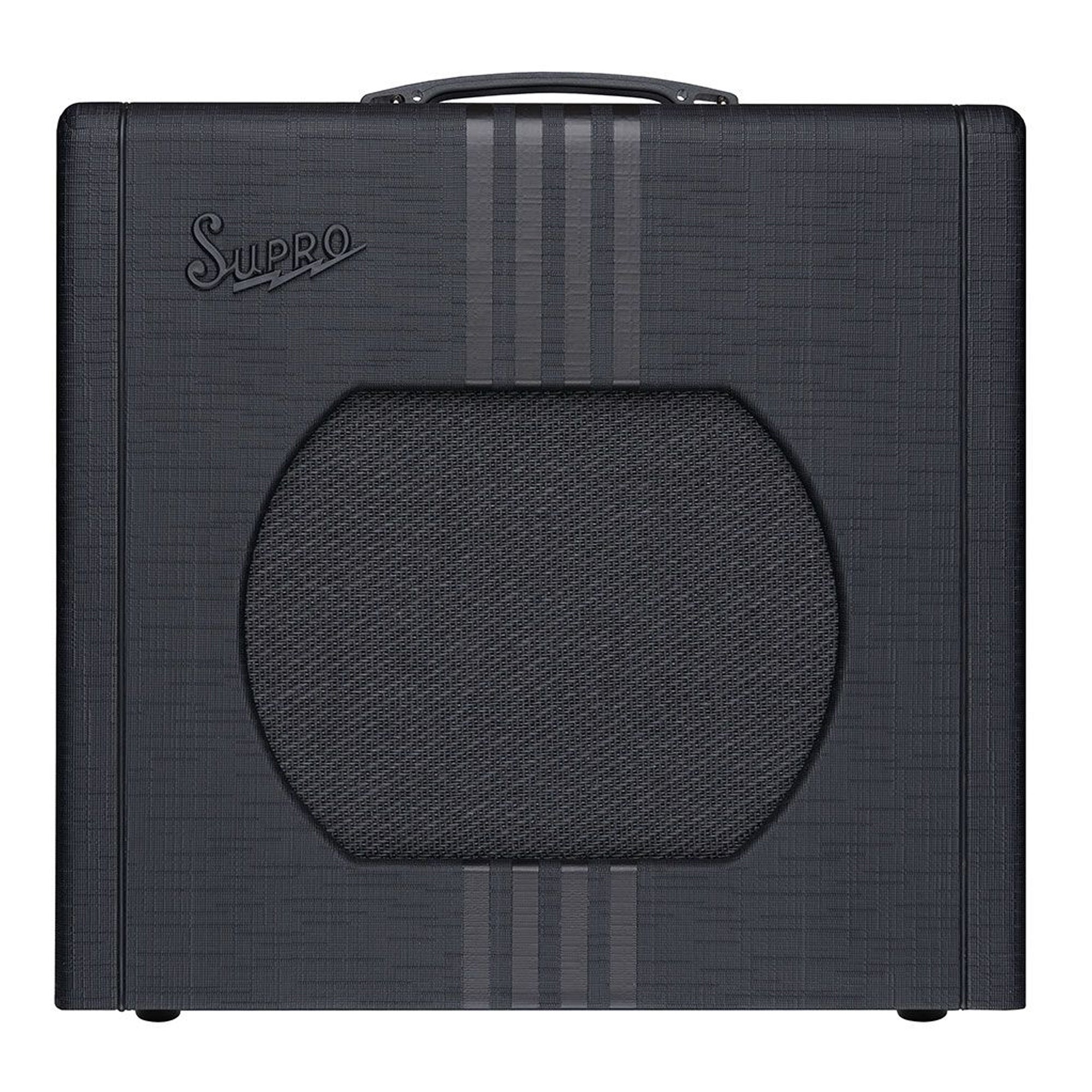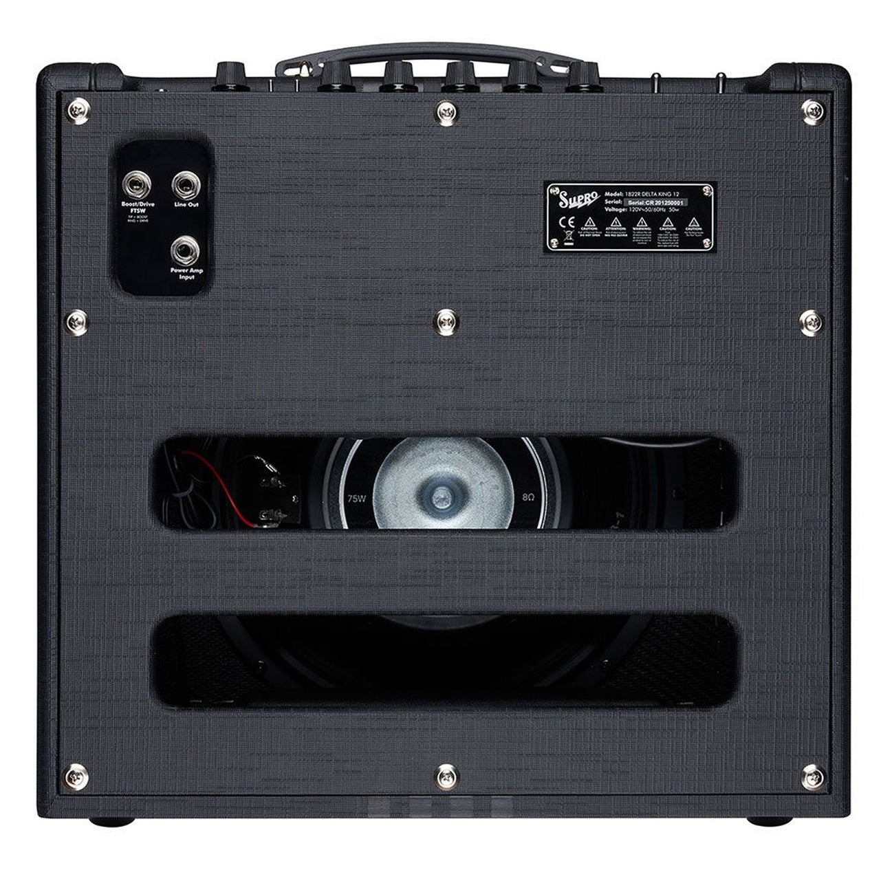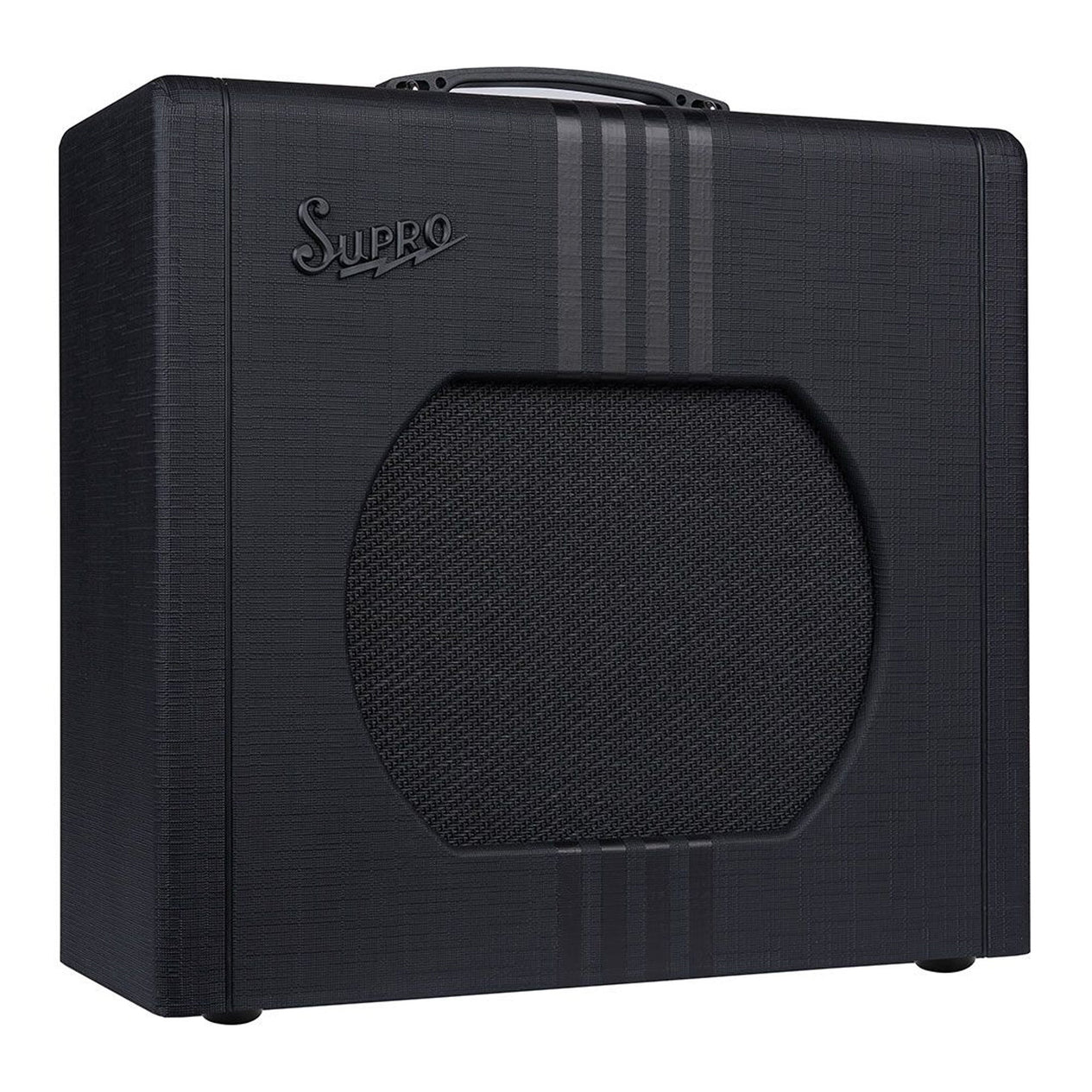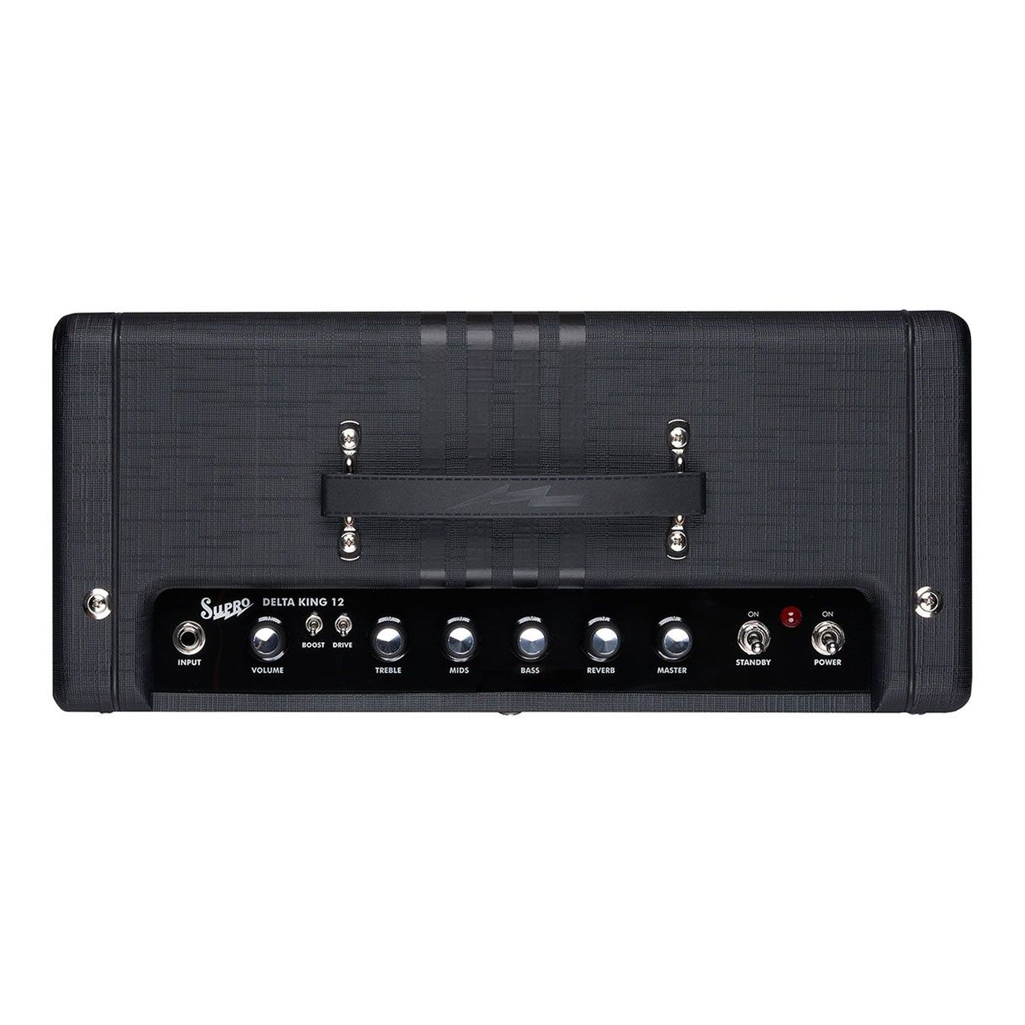 The Supro Delta King 12 combo captures the vintage Supro amp tone that helped sculpt the sound of early electric Rock & Roll and the British Invasion of the 1960s. Its single-ended Class A tube power amp provides the same raw tonal characteristics and remarkable touch sensitivity features of its mid-century counterparts, all while delivering a full 15 watts of 6L6 tube power through our custom 12-inch DK12 speaker. Features include front-end gain via a 12AX7 tube preamp, a FET-driven boost function, Pigtronix FAT high-gain mode, 3-band EQ, master volume, and custom-made genuine analog spring reverb.