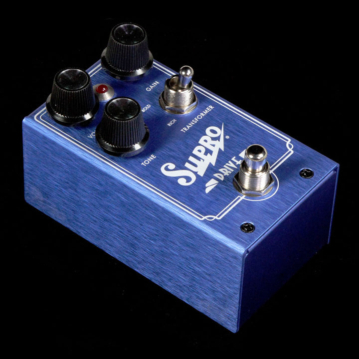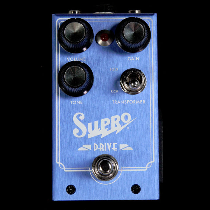 What would give you the authentic Supro drive tone than a pedal from the actual company itself? The analog Supro Drive effect box recreates the circuitry of the amp from beginning to end using an actual output transformer, along with a Class A power amp section, and a toggle switch that lets you choose between Bold and Rich modes from the transformer. Taking the overdrive pedal platform one step further, the Supro Drive offers a TRS port for expression pedal control of the gain knob. With the expression pedal in use, the on-board gain knob sets the maximum value, while a user-adjustable, internal trimmer sets the minimum gain setting. All Supro pedals are assembled in Port Jefferson, NY, USA, featuring custom-tooled, anodized, brushed-aluminum enclosures, 9V battery or AC powered operation, rear-mounted metal jacks, easy-access side-mounted battery drawer and studio-friendly, noiseless (click-free) true-bypass switching.