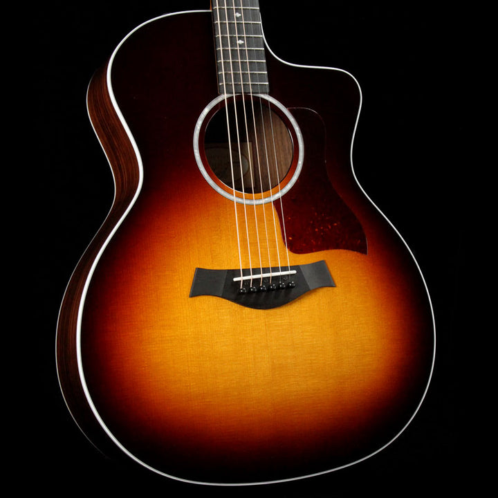 This 214ce Deluxe in Sunburst with laminate rosewood back and sides from Taylor adds class and refinement to what a mid-priced acoustic guitar can be. The Deluxe model features a solid Sitka spruce top on laminate rosewood for classic looks with a warm and articulate tone. Appointments like an ebony fretboard with small diamond inlays, white body binding, and a full gloss body give this piece an air of excellence. Plus you get all the warmth and natural amplification of Taylor's renowned Expression System 2 electronics.
