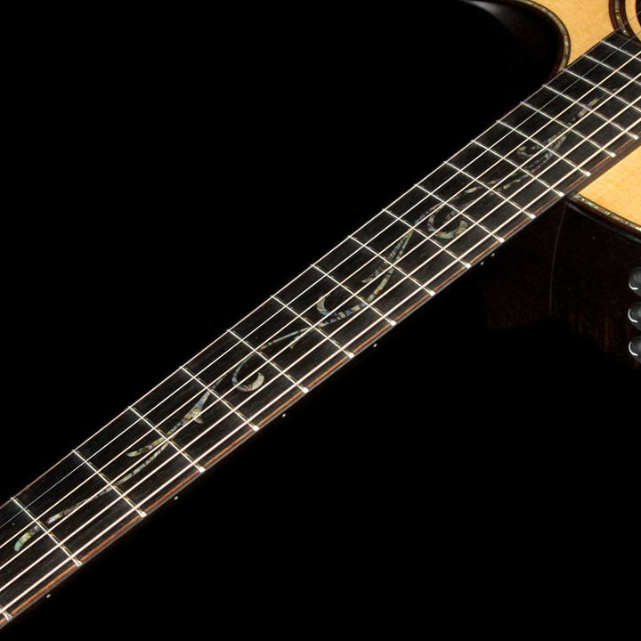 A new and very special model in the Taylor lineup, this K14ce Builder's Edition was one of the first Taylors to receive the new V-Class bracing, and it's also the first to offer the Silent Satin finish - a smooth and elevated satin finish that makes no noise when rubbed against! Other special features include a beveled armrest, a re-shaped cutaway, a beautiful Kona Burst finish over the Hawaiian Koa back and sides, and a torrefied Sitka spruce top. A gorgeous paua/koa spring vine fingerboard inlay and luxurious gold tuners complete this high end Taylor package that sounds as good as it looks!