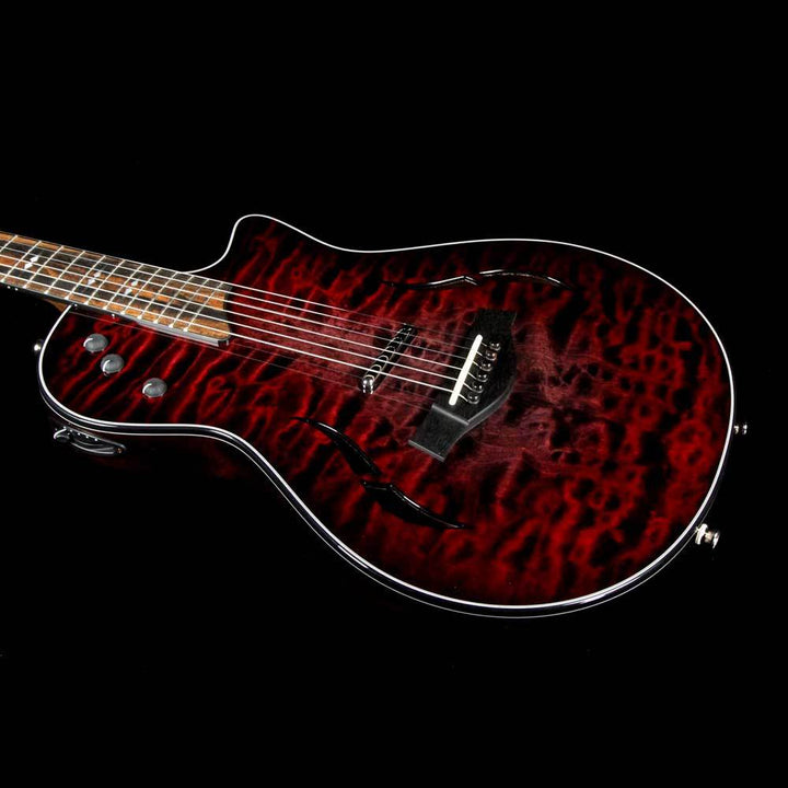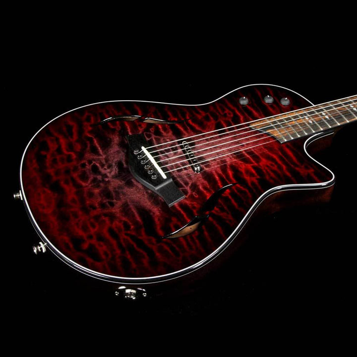 The semi-hollow Taylor T5z offers a more compact body size than the original T5, plus a 12” radius fretboard with jumbo frets allows for easy bending and playability. This Roadshow Exclusive limited edition T5z Pro boasts a stunning figured maple top covered in a unique Grapevine finish, and the guitar delivers a nice presence in the high mids. It's the ultimate blend of acoustic and electric functionality and tonality, courtesy of five-way switching, onboard tone controls, and dual compatibility with electric and acoustic amps. With an acoustic body sensor, concealed neck humbucker, and visible bridge humbucker, you have an instrument at your disposal that is the Swiss army knife of tones.