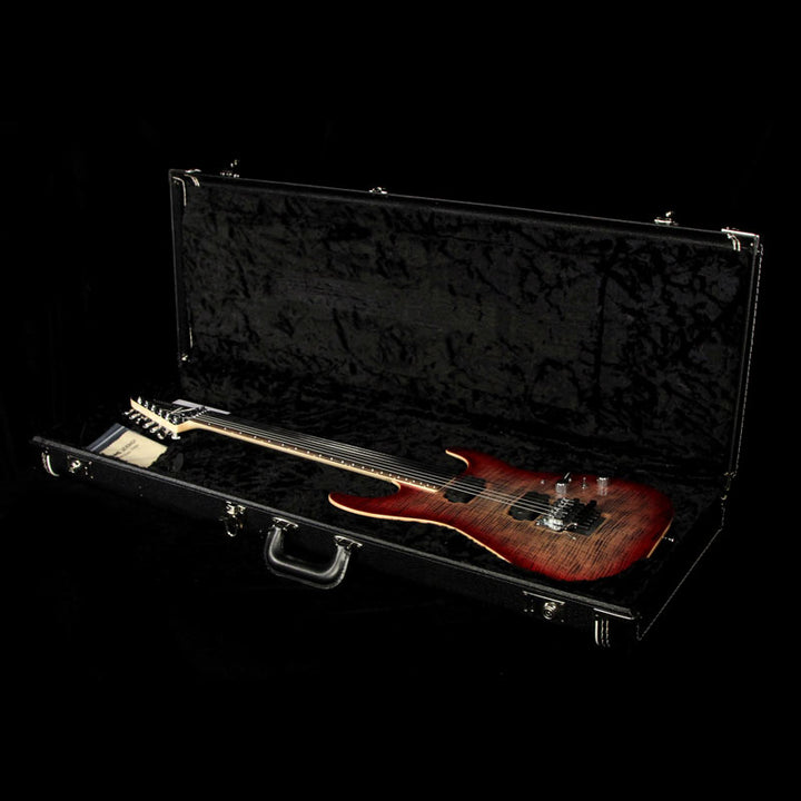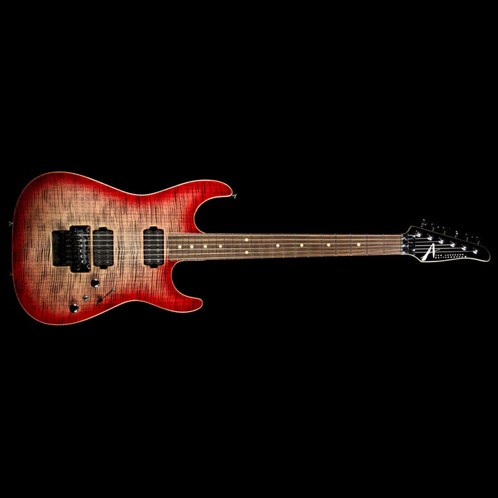 This is pre-owned and still in overall excellent condition Tom Anderson Drop Top guitar with a stunning Natural Black to T-Red Burst finish over a figured maple top on a mahogany body. The maple neck has the Anderson Happy Medium profile with a rosewood board and medium frets, along with Anderson pickups - a H1 and H2+ in the neck and bridge respectively, paired with a recessed-route Schaller tremolo and locking nut to give you hot searing lead tones and deep tremolo dive capabilities. The tone knob is a push-pull to split the pickups, and the scraped binding on the killer looking maple top really takes the looks of this guitar to the next level.