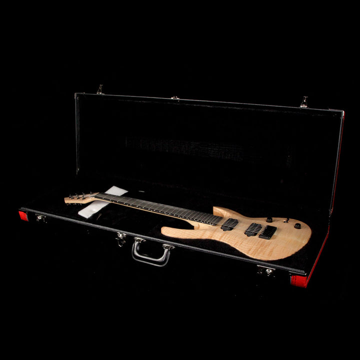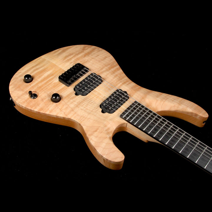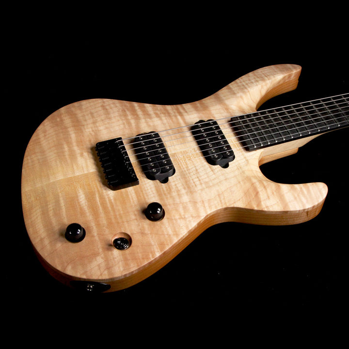 Here's a looker and a heavy riffer! This Baritone 7 string Jackson B7 is perfect for downtuned riffs! It boasts a nice looking Natural Oil finish over a beveled alder body and a AAA flame maple top, a supremely comfortable quartersawn maple neck with smooth ebony fingerboard, a pair of DiMarzio D'Activator humbuckers, and a beefy Jackson HT7 hardtail bridge. This used baritone Jackson is in excellent condition and includes the original hardshell case.